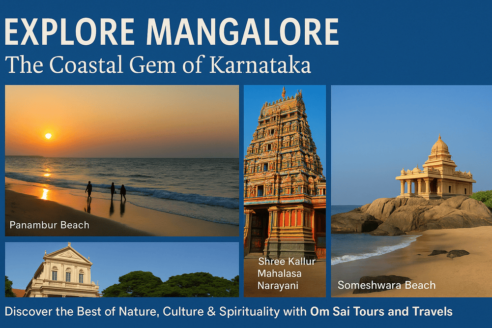 Discover the Best of Nature, Culture & Spirituality with Om Sai Tours and Travels Welcome to Mangalore (Mangaluru) – a captivating coastal city where scenic beauty, ancient traditions, and modern charm blend in perfect harmony. Located between the Arabian Sea and the Western Ghats, Mangalore is